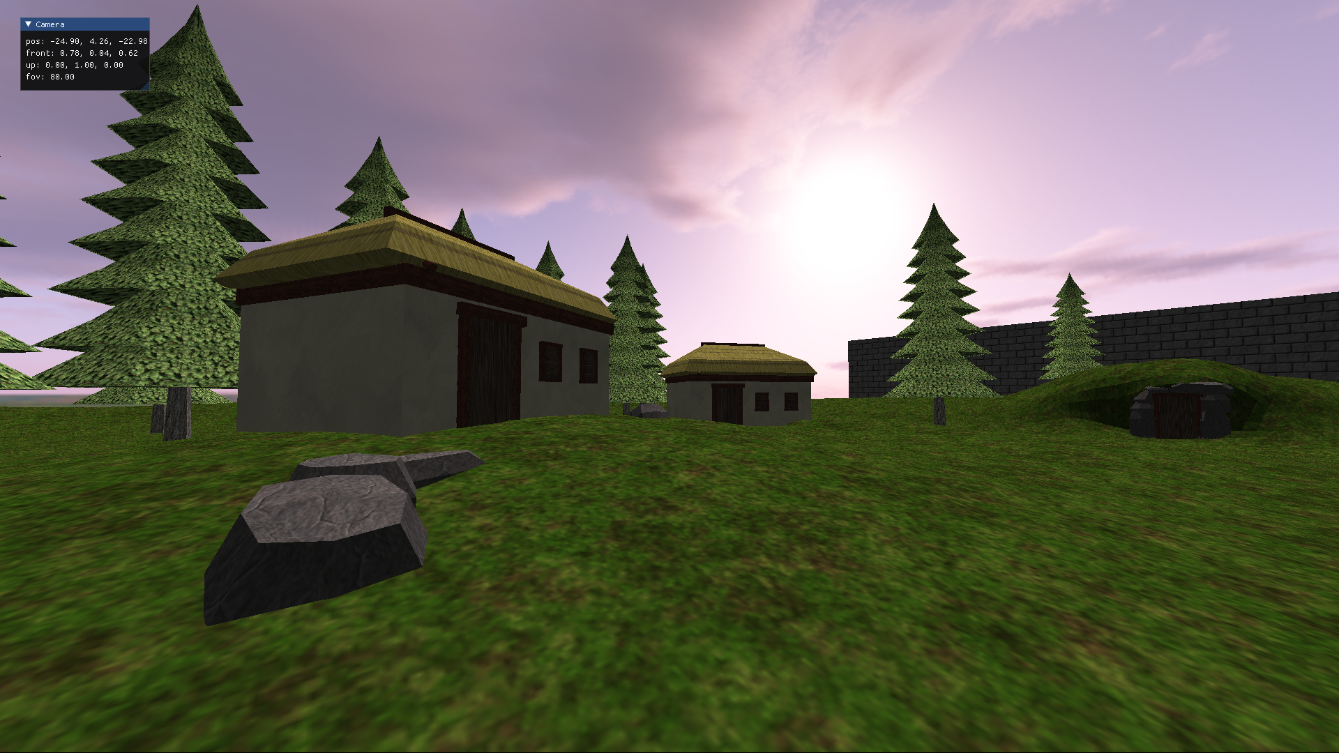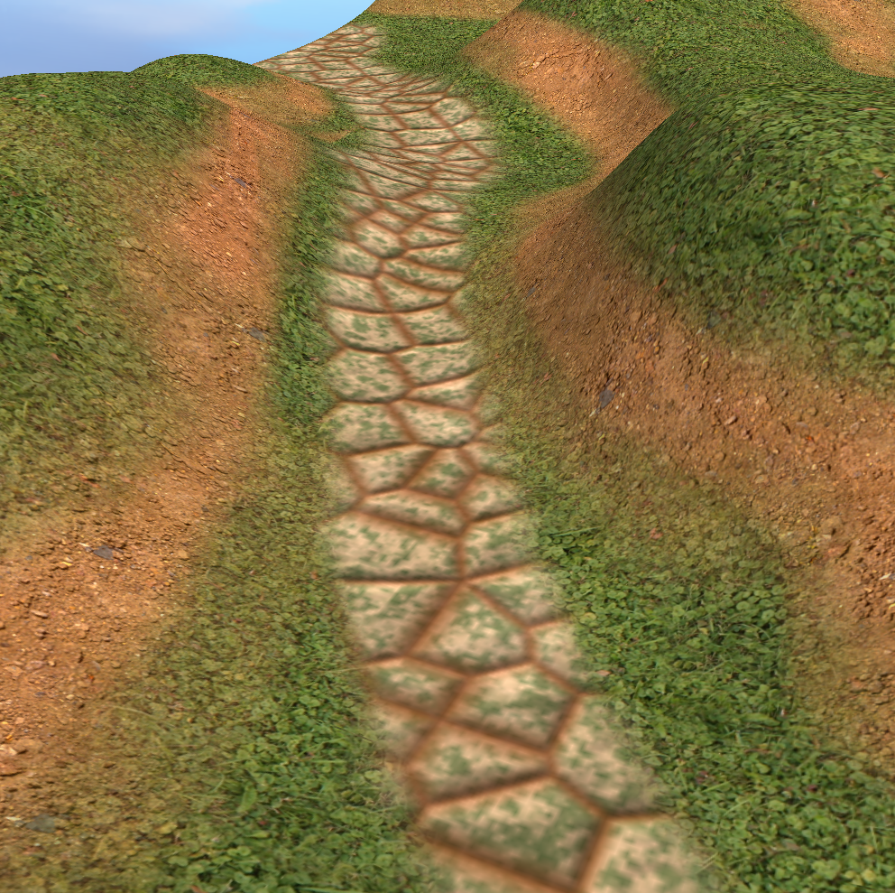The other benefit of doing it this way is I can use the texture paining too directly in blender to create the weights texture, which is quite a nice workflow. This could be extended by using additional maps to control things like e.g. snowfall, autumn leaves, etc. It would also be quite simple to generate the base texture procedurally (or modify it at runtime).
